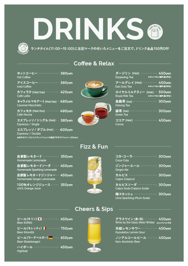 カフェメニューにはない、おつまみやお酒をご提供いたします。